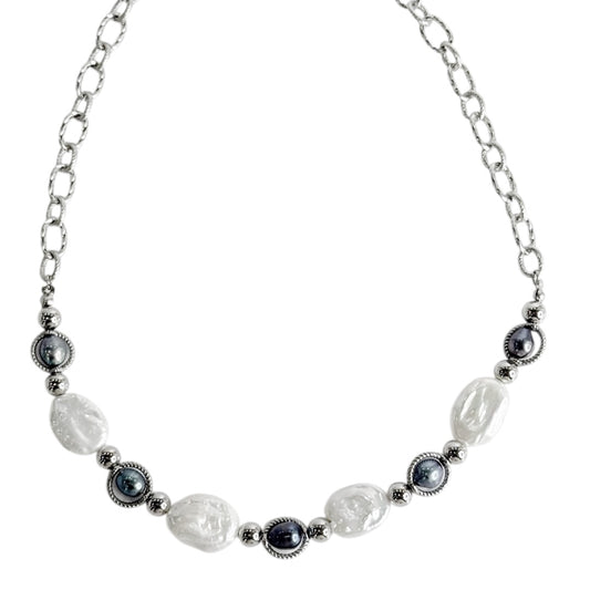 Gargantilla Sfinge con Perla Natural y Piedra Hematita – Joya Artesanal y Elegante