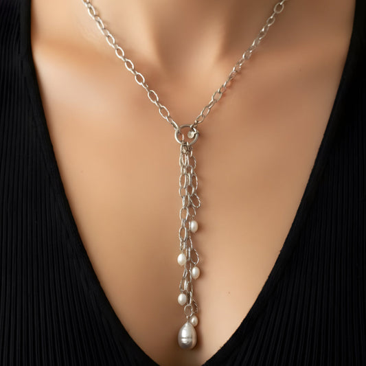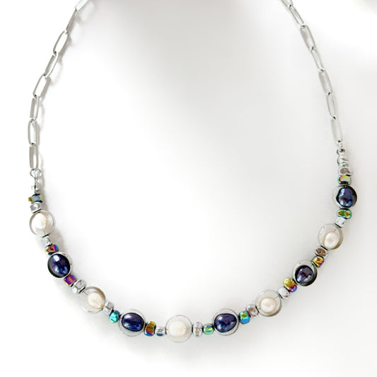 Gargantilla Sfinge – Acero con Perla Natural y Cierre Reasa Ajustable