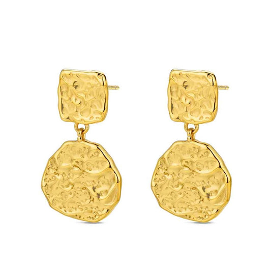 Pendientes de Acero Chapado 18K - Diseño de Discos Irregulares Sofisticados