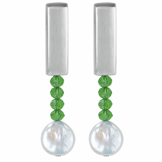 Pendientes Boreal con Perla Natural y Cristal Verde – Marca Sfinge