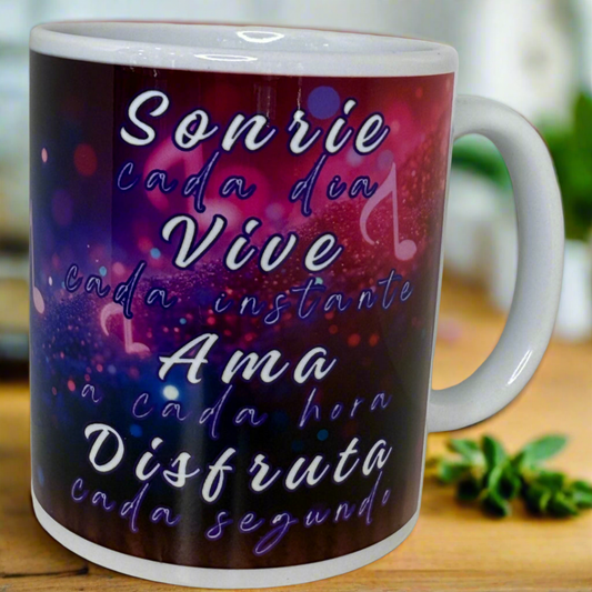 Taza Personalizada con Frase Motivadora | Diseño “Sonríe, Vive, Ama, Disfruta”