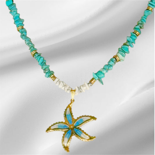 Gargantilla de Turquesa y Howlita Blanca – Colección Brisa – Marca Sfinge