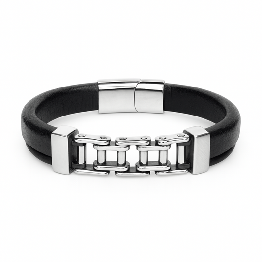Pulsera de Piel y Acero Eslabón de Fuerza – Sfinge