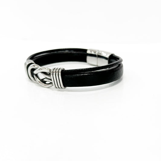 Pulsera Nudo del Amor en Cuero y Acero – Símbolo de Unión Eterna