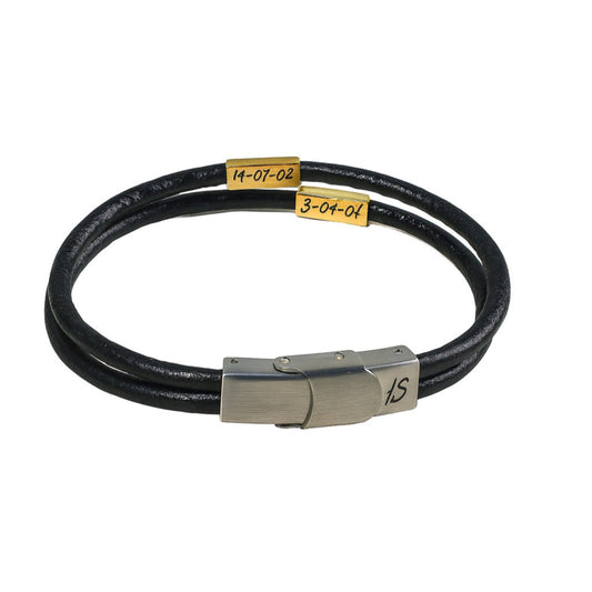 Pulsera de cuero y acero con fecha grabada personalizada