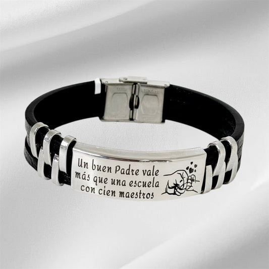 Pulsera de Cuero con Placa Grabada – Regalo Especial para Papá
