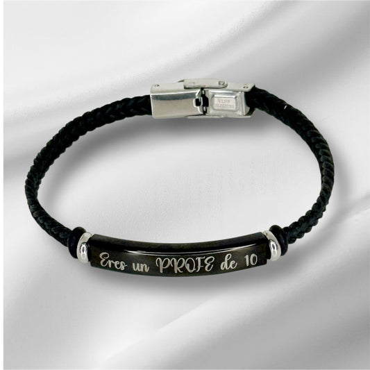 Pulsera de Acero y cuero trenzado personalizada