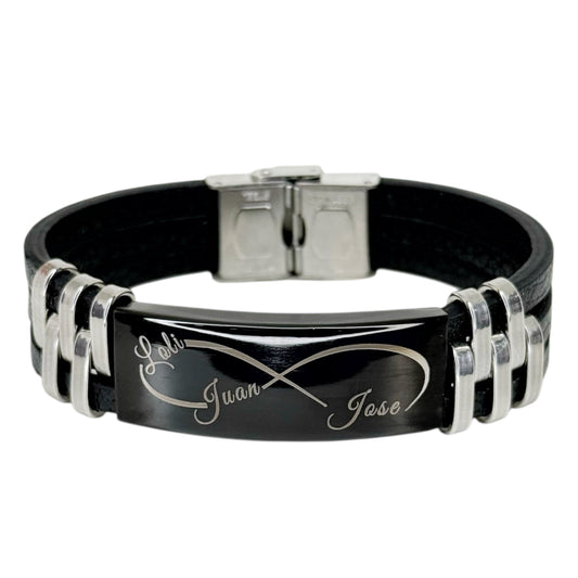 Pulsera Doble tira de Cuero y Acero Personalizada unisex