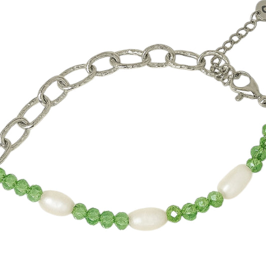 Pulsera Boreal Verde – Cristal Facetado y Perlas de Agua Dulce | Sfinge