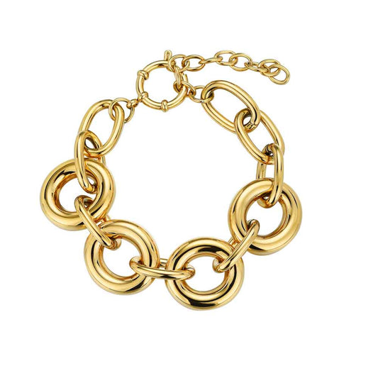 Pulsera de Eslabones Grandes en Acero Chapado en Oro 18k - Estilo Contemporáneo y Sofisticado