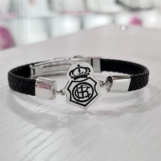 Pulsera de cuero y plata con escudo de fútbol – La pasión de tu equipo