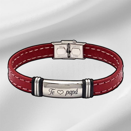 Pulsera Te ❤️ Papá en Cuero Rojo y Acero – Regalo Especial