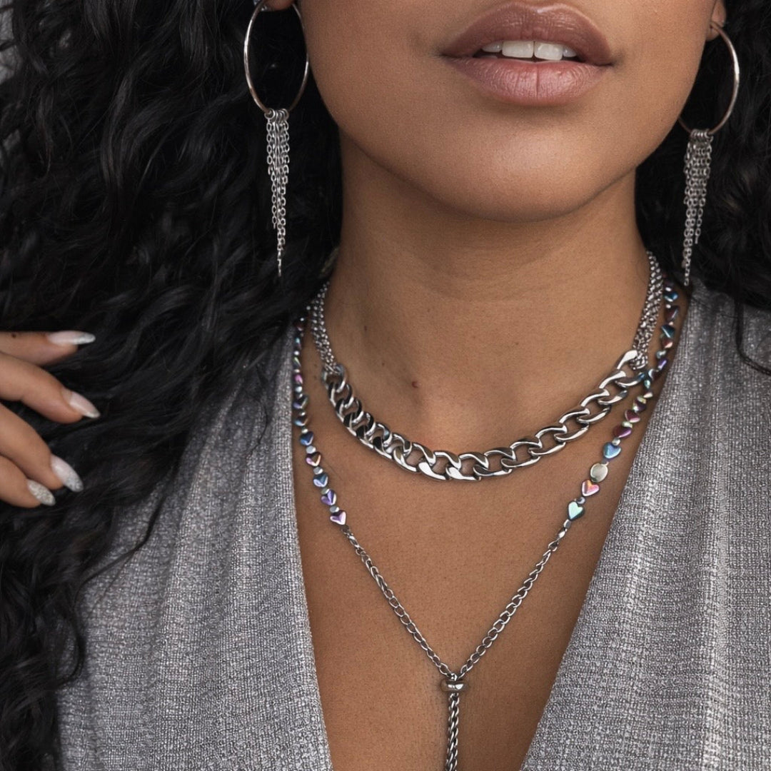 La Gargantilla Dual es la pieza perfecta para quienes buscan un accesorio elegante y versátil. Su diseño minimalista con doble cadena crea un efecto sofisticado que realza cualquier look, desde el más casual hasta el más formal.