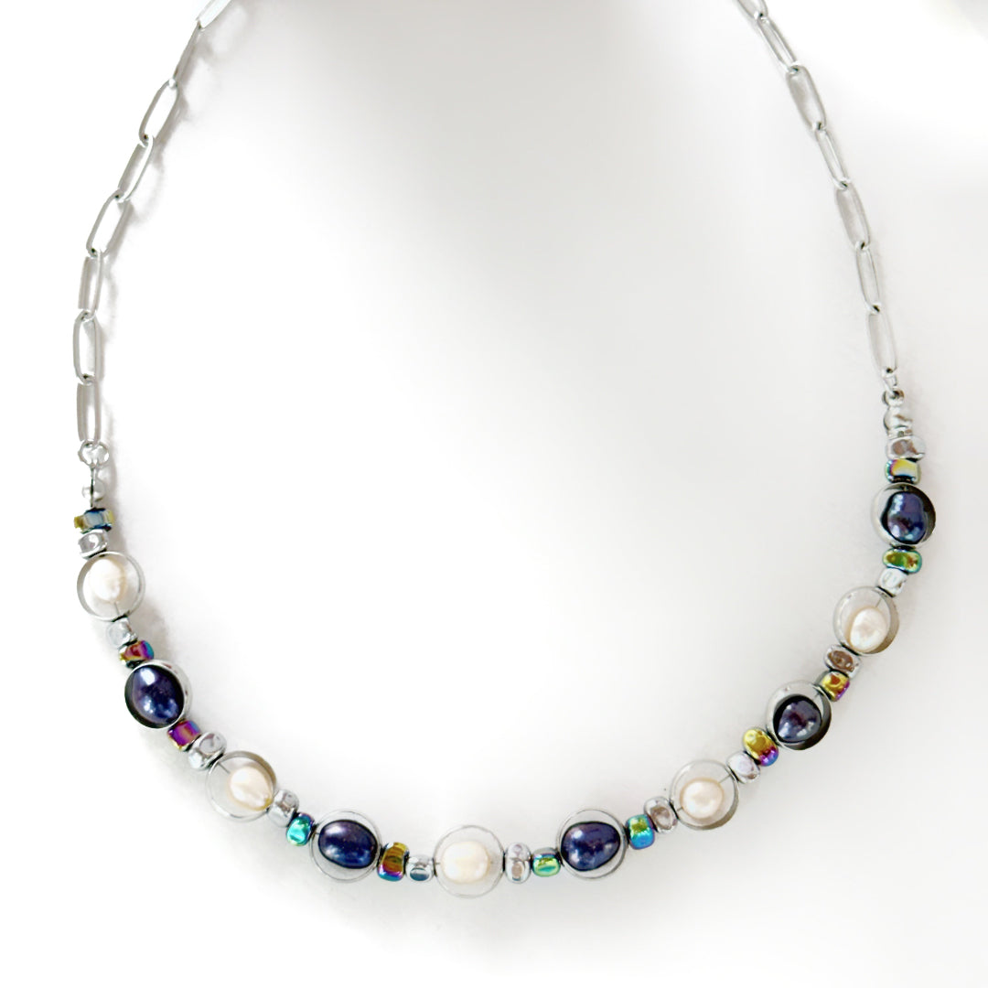 Gargantilla Sfinge con Perla Natural y Piedra Hematita – Joya Artesanal y Elegante