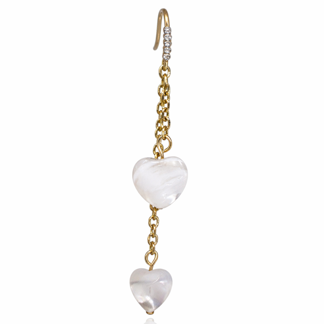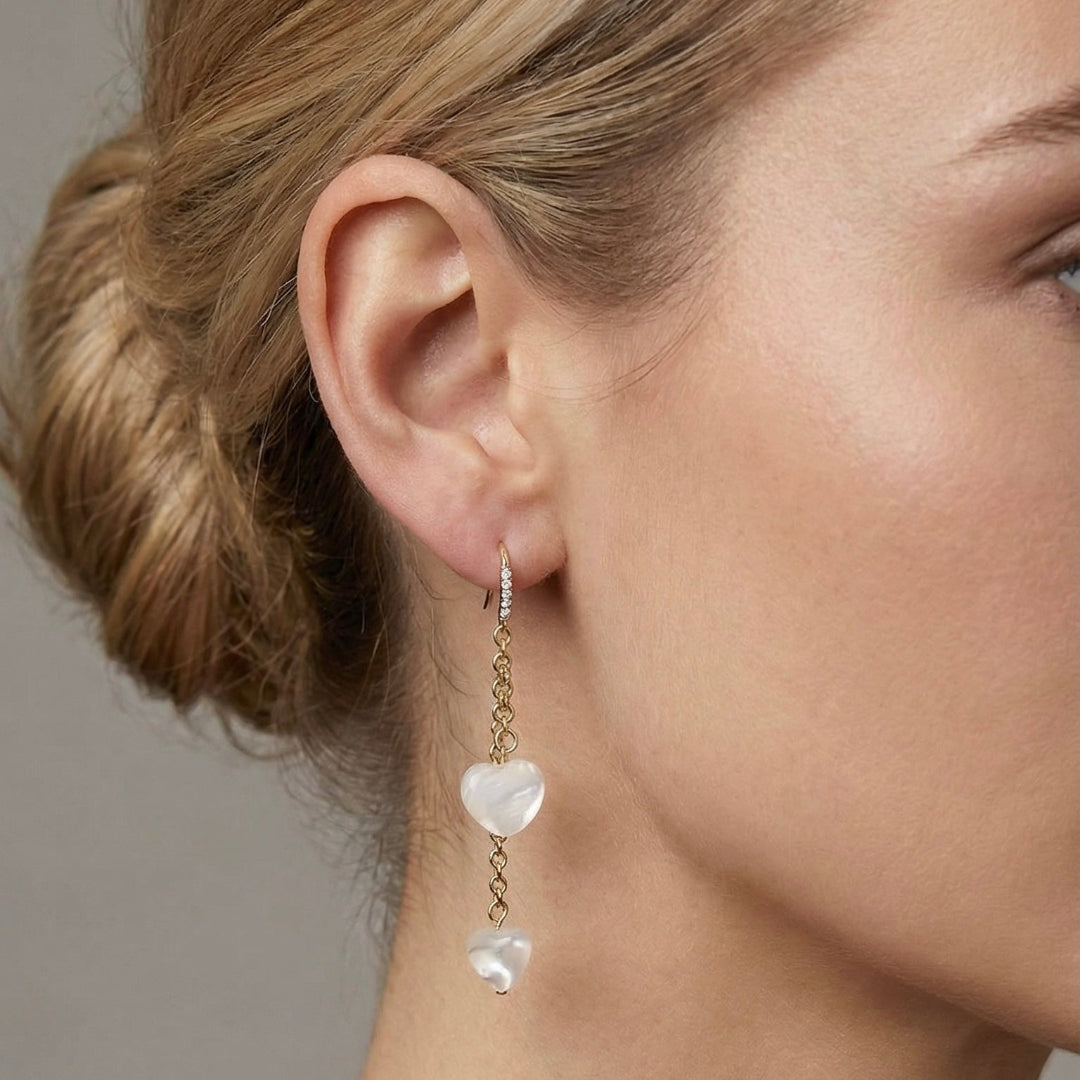 El corazón de nácar refleja tonos suaves y naturales, haciendo de este pendiente una elección perfecta tanto para el día a día como para ocasiones especiales. Puede llevarse solo, como pieza protagonista, o formando conjunto con gargantillas y collares de la colección, creando una armonía elegante y atemporal.